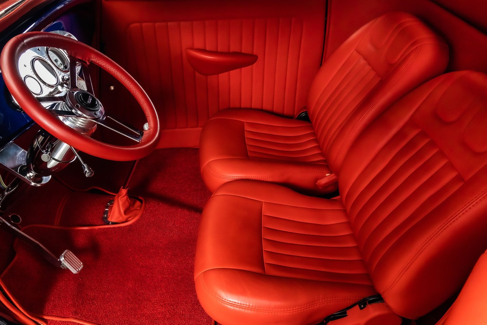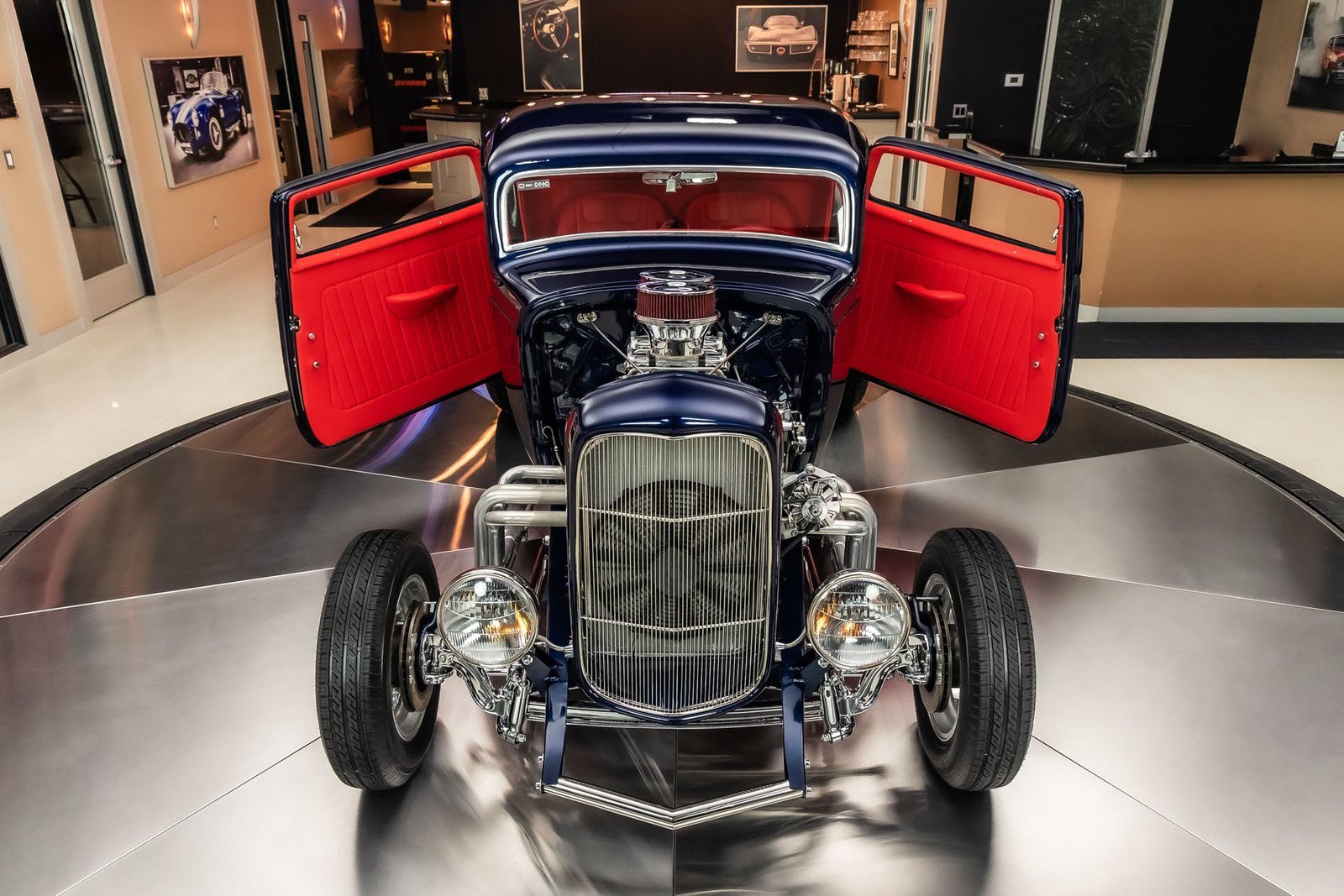 Inside, the red interior adds bold contrast and a refined touch. Modern gauges, power windows, tilt steering, and quality hardware create a cockpit that’s both comfortable and functional without losing the raw appeal of a traditional hot rod. Built to be driven and enjoyed, this 3-window coupe captures the spirit of classic hot rodding with modern reliability and performance.