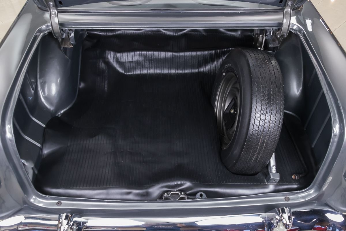 This example has benefited from a complete frame-off, nut-and-bolt rotisserie restoration, resulting in a car that presents beautifully from every angle. With very limited mileage since completion, it retains the fresh, tightly assembled feel enthusiasts look for in a high-quality restoration. Finished in a striking graphite gray, the exterior highlights the Bel Air’s crisp lines and polished trim, while the lowered stance gives it a subtle, modern edge without losing its classic identity.