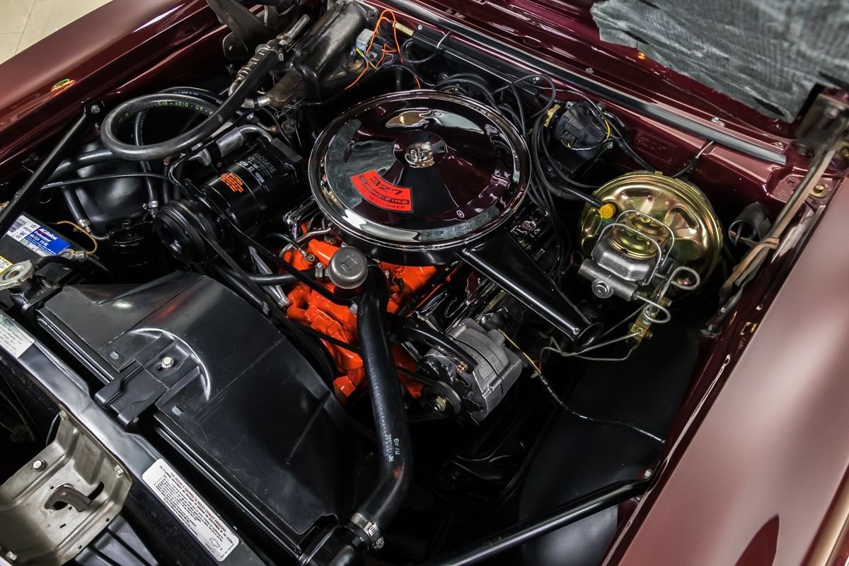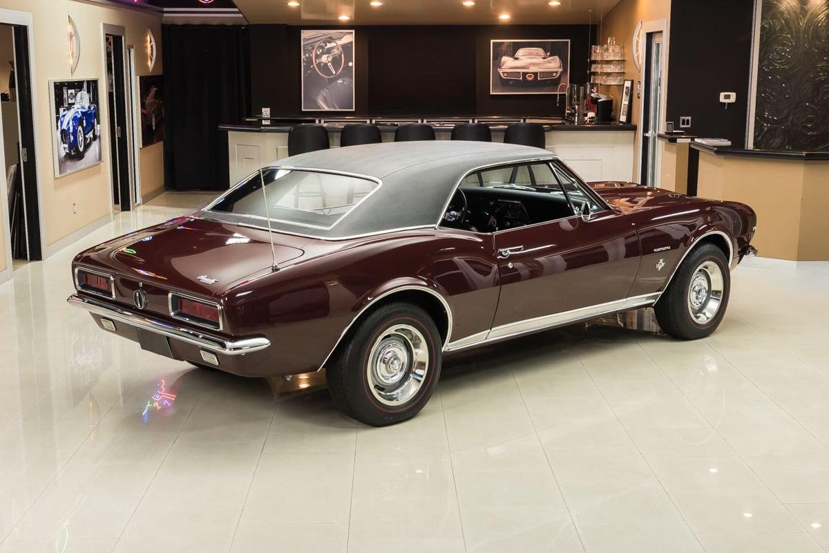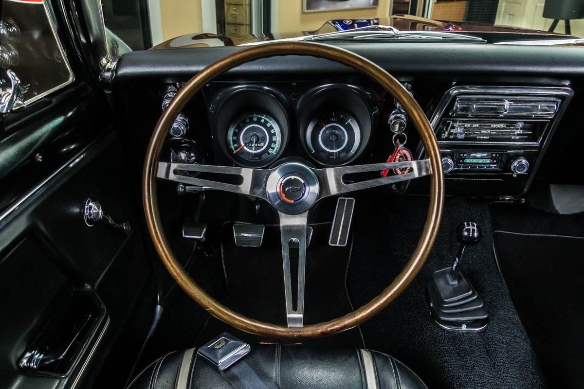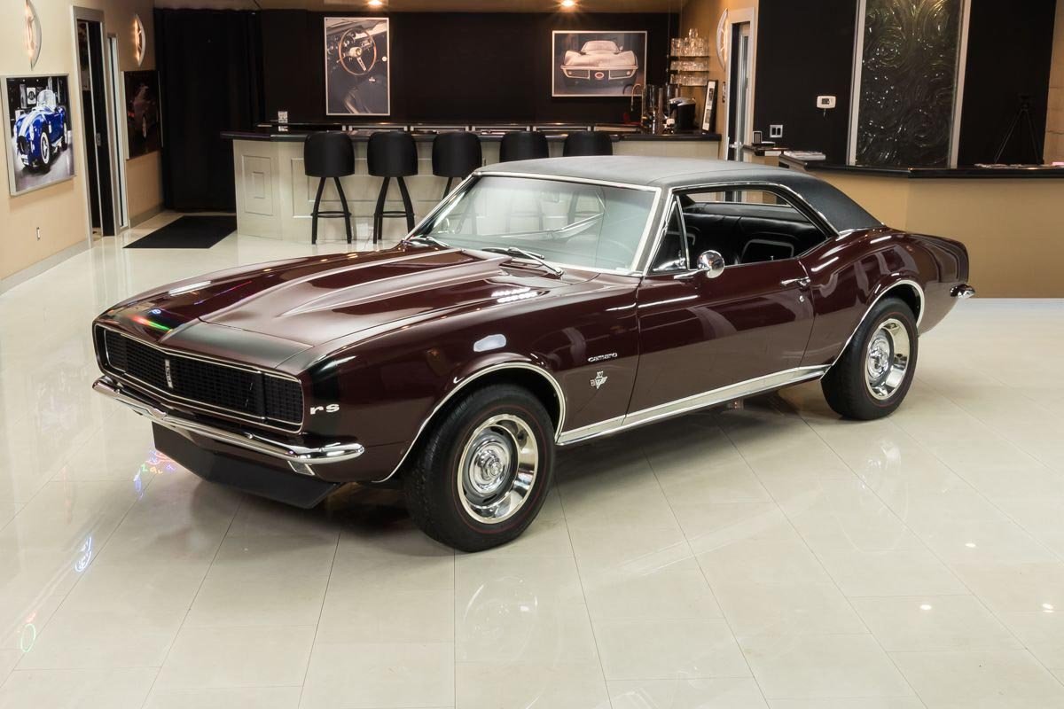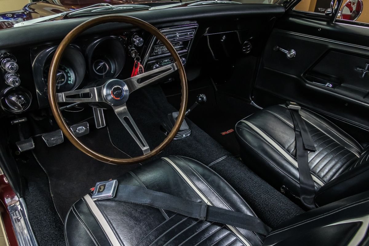 This example is a true factory RS and has benefited from a comprehensive, nut-and-bolt restoration completed with close attention to originality and presentation. Finished in Madeira Maroon with a contrasting black vinyl top, the car captures the elegant yet aggressive character that made early Camaros so desirable. The straight body, correct styling elements, and period-correct appearance reflect the quality of the restoration work.