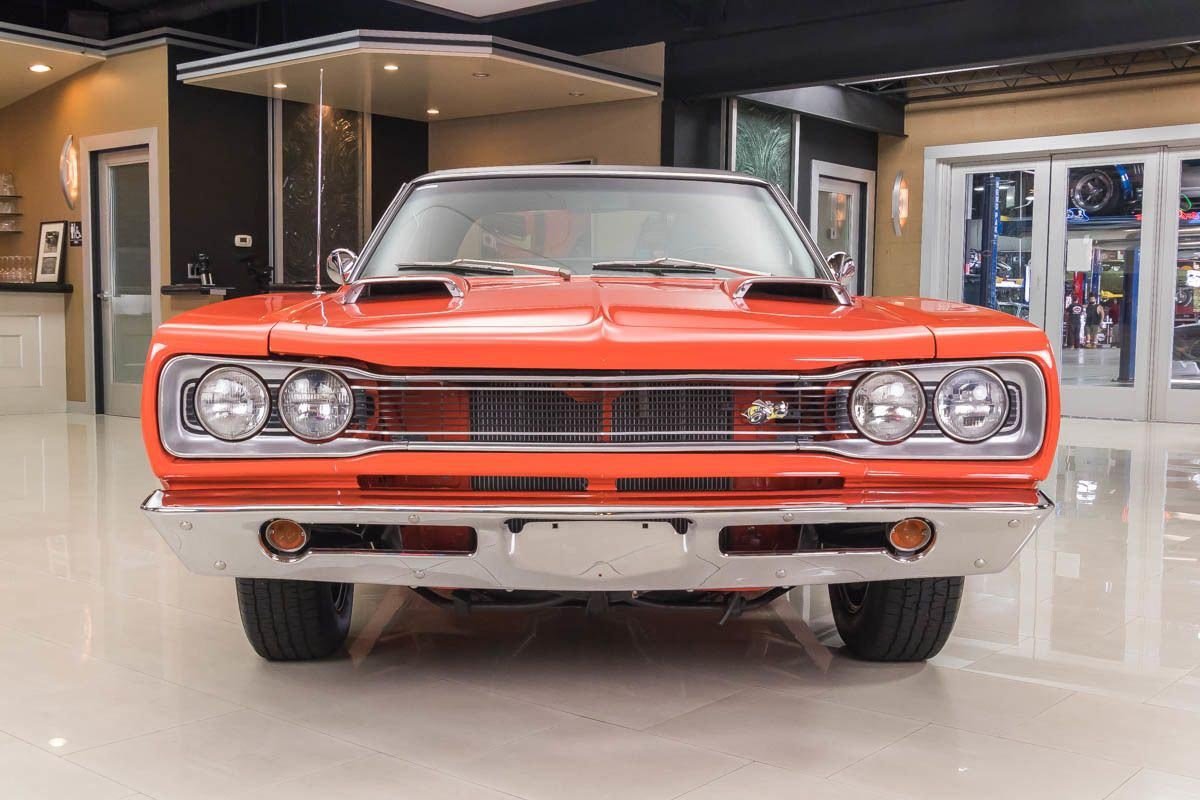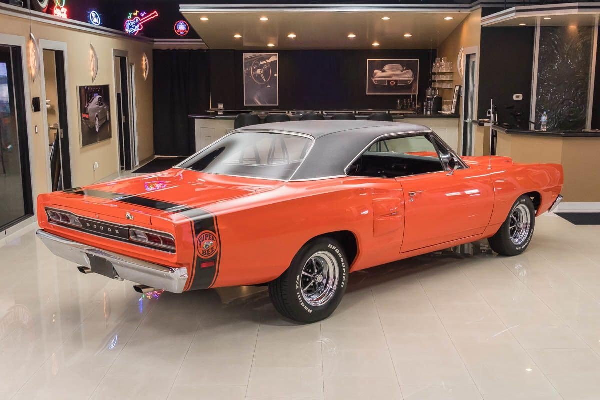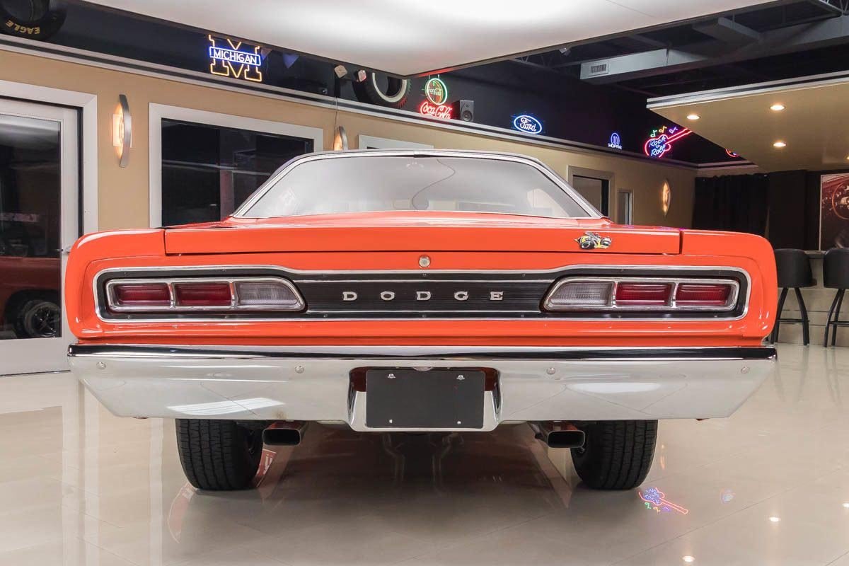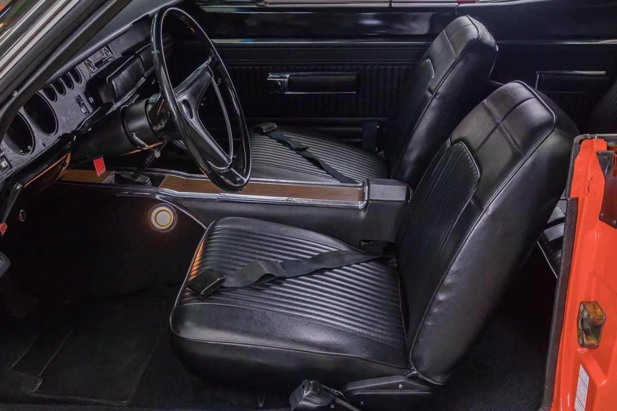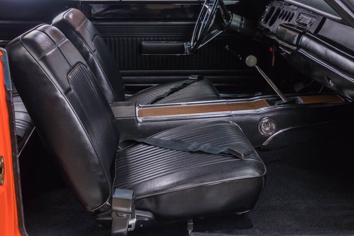 This example has undergone a complete rotisserie restoration and retains its original sheet metal, a major plus for collectors. Finished in its original orange color, the car presents with strong visual impact and classic Super Bee personality. With only a few hundred miles driven since completion, it maintains a fresh, tightly sorted feel that reflects the quality of the restoration.
