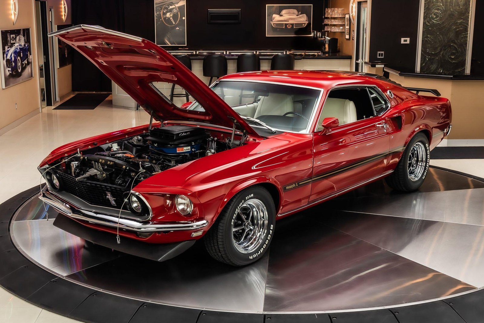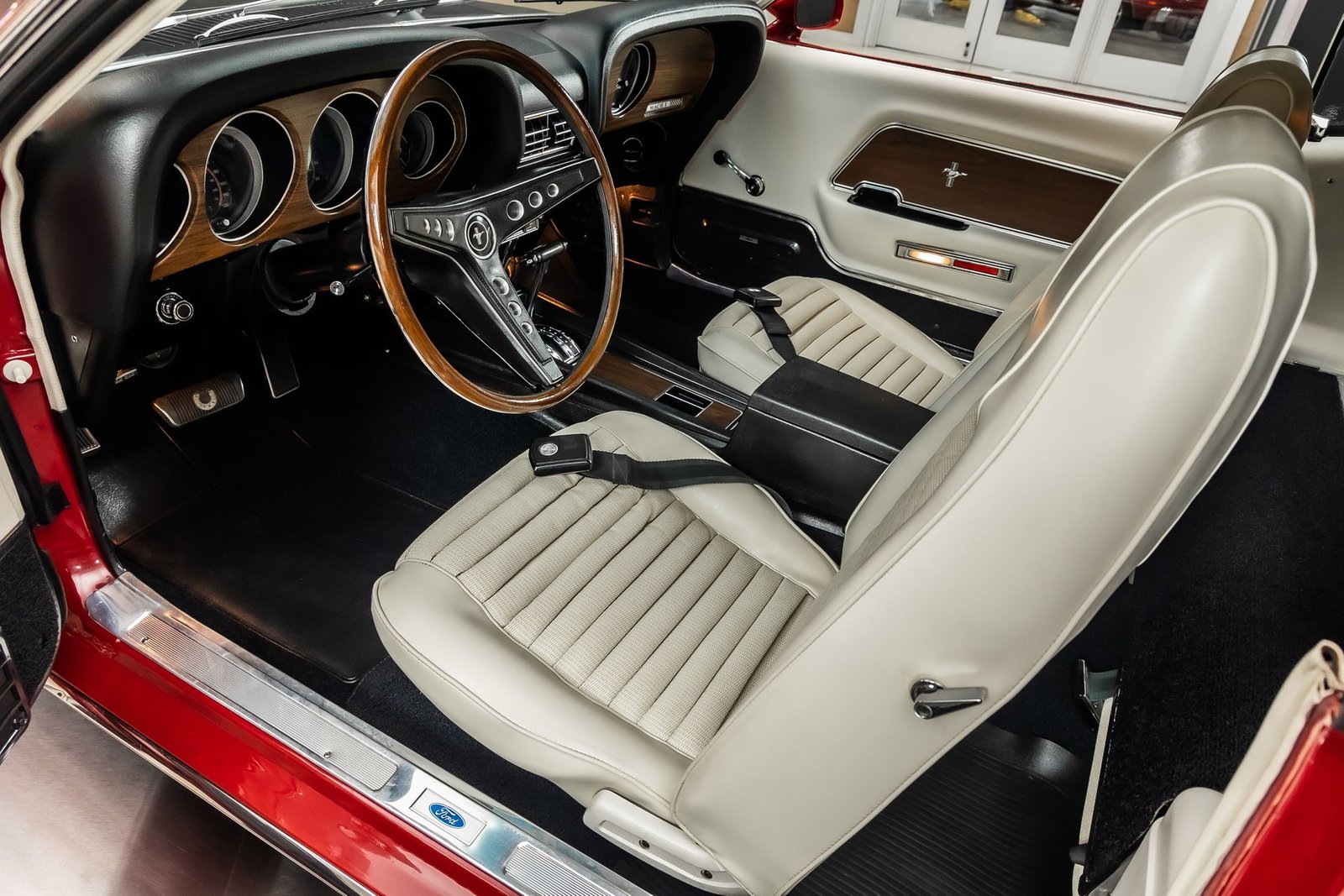 At its heart is a numbers-matching 428 Cobra Jet V8, one of Ford’s most legendary big-block engines. Known for its massive torque and dominant street performance, the 428CJ defines what a top-tier muscle car should feel like. Paired with a C6 automatic transmission, this setup delivers smooth yet authoritative power, making the car both comfortable to drive and thrilling under acceleration.